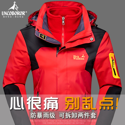 Áo khoác ngoài trời Quần áo nam Tide thương hiệu ba trong một bộ đồ cộng với nhung dày không thấm nước Tây Tạng quần áo đi bộ đường dài nữ mùa đông áo khoác chống thấm nước nữ