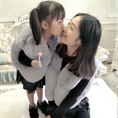 Áo khoác nỉ cho trẻ em áo khoác lông thú 2018 mùa đông Hàn Quốc phiên bản áo lông thỏ lông cỏ dày áo khoác mẹ và quần áo trẻ em set đồ đẹp cho mẹ và bé Trang phục dành cho cha mẹ và con