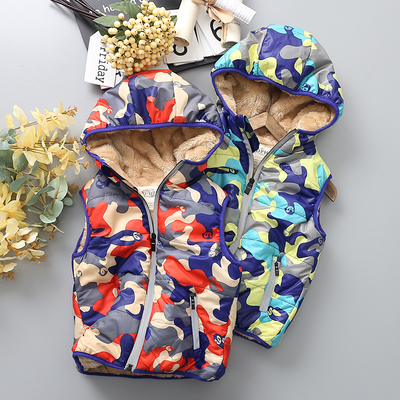 Áo khoác trẻ em Cheng Chengjia cộng với áo khoác nhung dày áo khoác trùm đầu 2018 mùa thu đông mới cho bé trai áo vest ấm áp áo gile bé gái hàng độc Áo ghi lê