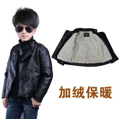 Áo khoác trẻ em cho bé trai 2017 mùa thu đông mới Quần áo da trẻ em dày phiên bản Hàn Quốc của áo khoác cho bé trai lớn cộng với áo khoác da nhung áo khoác lông cho bé gái