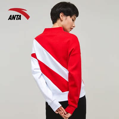 Áo len Anta nữ cổ tròn 2019 xuân mới phiên bản Hàn Quốc của xu hướng áo thun thể thao áo thun Quan Hiểu có cùng đoạn - Thể thao lông cừu / jumper áo thun tay dài