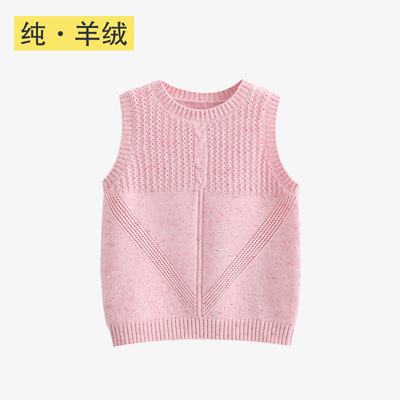 Áo len bé gái 2019 mới vest vest bé gái màu hồng cashmere nguyên chất bé cổ tròn mui ấm áo vest - Áo ghi lê áo gile cho bé trai sơ sinh