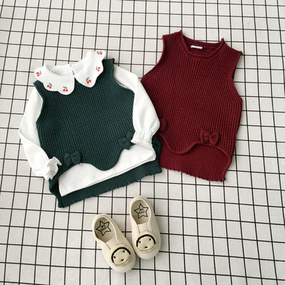 Áo len bé gái mùa thu đông dày ấm áp áo len bé gái ngắn trước thời trang dài Hàn Quốc vest áo gile lót lông cho bé Áo ghi lê