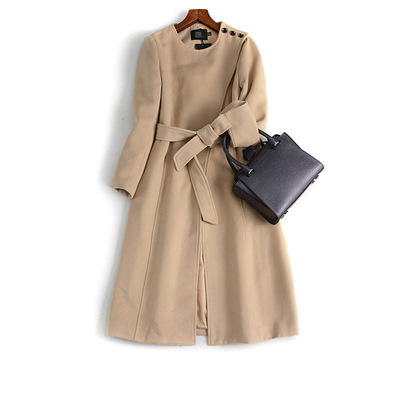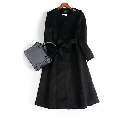 Áo len cổ lọ màu tối thanh lịch Áo len dài vừa phải 2018 mùa đông mới áo khoác dạ nữ Accentuated eo áo