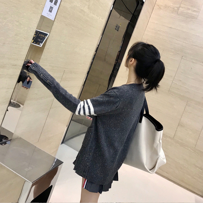 Áo len cổ lọ màu xanh đậm cổ điển của NORA chic mùa thu 2018 mùa thu đông mới áo cổ lọ Cardigan