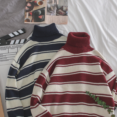 Áo len cổ lửng cao cổ của Hàn Quốc ulzzang Harajuku mùa thu và mùa đông đôi sang trọng áo len thổ cẩm Cặp đôi áo len