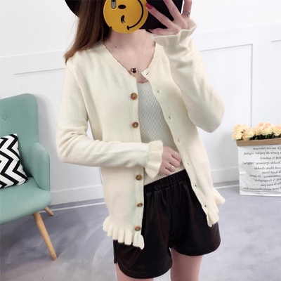 Áo len của phụ nữ cardigan Hàn Quốc phiên bản của áo len lỏng đoạn ngắn gỗ ngọt ngào tai sinh viên mùa xuân và mùa thu áo sơ mi của phụ nữ quần áo áo khoác cardigan nữ Cardigan