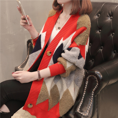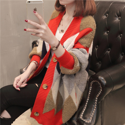 Áo len dệt kim NET Áo len đỏ Nữ mặc 2019 Thu đông Xu hướng mới Áo khoác rộng vừa phải Gió lười - Đan Cardigan thời trang nữ cao cấp Đan Cardigan