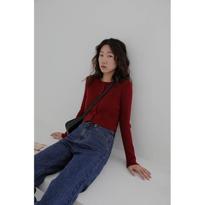 Áo len dệt kim ngắn tay dài 5siss len 2018 mùa thu mới cho người đàn ông nhỏ bé rốn bó sát áo len nữ