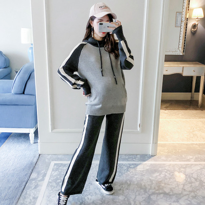 Áo len giảm giá 2018 mới mùa thu đông thời trang Hàn Quốc áo trùm đầu ra ngoài giản dị hai mảnh ao bau Áo thai sản