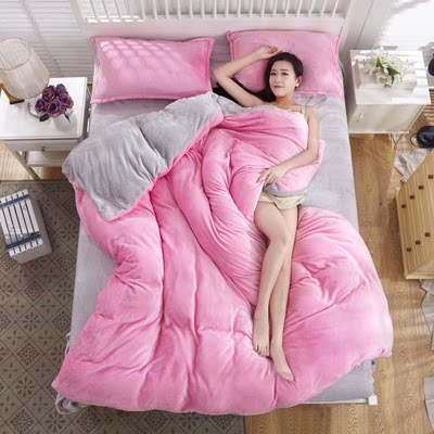 Áo len lông cừu bốn mảnh dày thời trang với nhung hai mặt nhung Hàn Quốc chăn vườn da lộn cá tính nhà mùa đông dễ thương mền gối Bộ đồ giường bốn mảnh