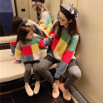 Áo len mẹ-con 2019 thu đông 2018 phiên bản mới của Hàn Quốc của mẹ chồng thời trang mẹ và con gái áo len màu trên đầu - Trang phục dành cho cha mẹ và con đồ cặp gia đình