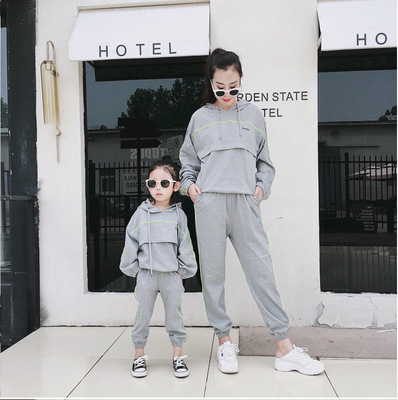 Áo len mẹ-con và áo len nữ 2019 mùa thu phong cách mới thời trang thể thao giản dị áo len trùm đầu hai mảnh - Trang phục dành cho cha mẹ và con thời trang gia đình