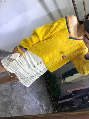 Áo len mới mùa thu hip hop lỏng Áo len cổ chữ V áo len ngắn nữ áo len lưới màu đỏ - Áo / áo thun quần áo nữ đẹp Áo / áo thun