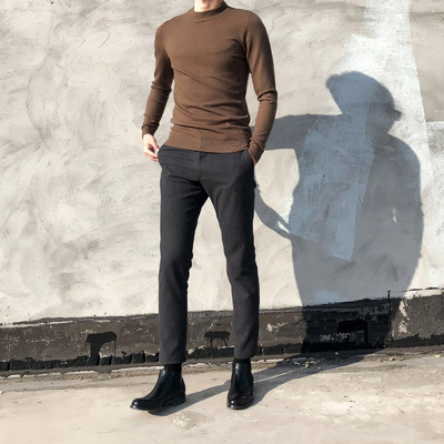 Áo len nam cổ cao bán chạy màu rắn cổ điển Áo len cổ lọ phiên bản Hàn Quốc của áo len mỏng co giãn -ST073 áo nam Áo len cổ tròn