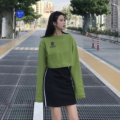 Áo len nữ đầu mùa thu 2018 mới của Hàn Quốc ulzzang thư lỏng thêu hoang dã dài tay áo sinh viên triều thời trang trung niên nữ cao cấp