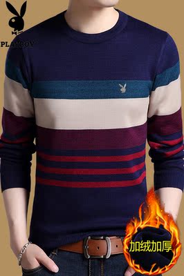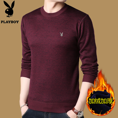 Áo len Playboy nam phiên bản Hàn Quốc cộng với áo len dày nam mùa đông trẻ trung cổ tròn đan áo len đáy áo khoác hoodie nam Áo len