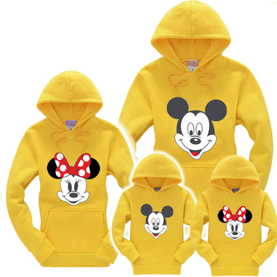 Áo len trẻ em cộng với áo len nhung XL cho phụ huynh-trẻ em mặc áo mùa thu đông 2018 tay dài Mickey ba gia đình đầy đủ váy trẻ em Trang phục dành cho cha mẹ và con