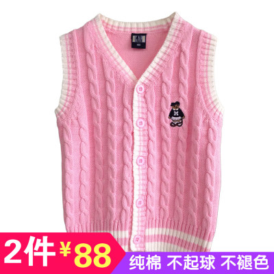 Áo len trẻ em mùa xuân và mùa thu mỏng phần 3-10 tuổi Áo sơ mi cotton dệt kim màu hồng áo len ba lỗ cho bé Áo ghi lê