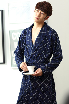 Áo ngủ nam mùa xuân và mùa thu cotton dài tay dày Kích thước lớn cộng với chất béo trung bình dài dây đeo nam áo choàng mùa thu áo choàng trong nhà áo choàng nhung Night Robe