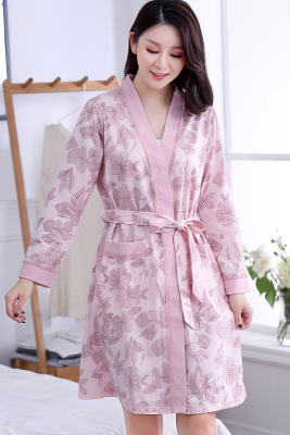 Áo ngủ nữ mùa xuân và mùa hè cotton dài tay áo tắm mỏng phần mùa thu cotton trung niên áo choàng tắm trung niên dài đồ ngủ quần áo ngủ