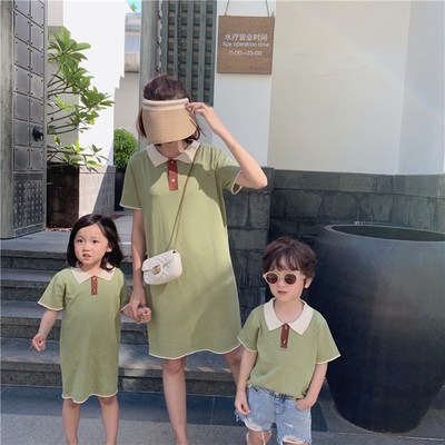 Áo phông bé trai màu bơ bé trai Áo sơ mi polo bé trai tay ngắn mặc cho gia đình có ba bé gái - Trang phục dành cho cha mẹ và con áo form rộng mẹ và bé trai Trang phục dành cho cha mẹ và con