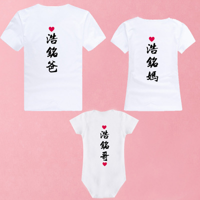 Áo phông cho bé tùy chỉnh cha mẹ-con mặc tên tùy chỉnh Chụp ảnh trăng tròn Quần áo 100 tuổi DIY gia đình mặc màu trắng shop quần áo trẻ em