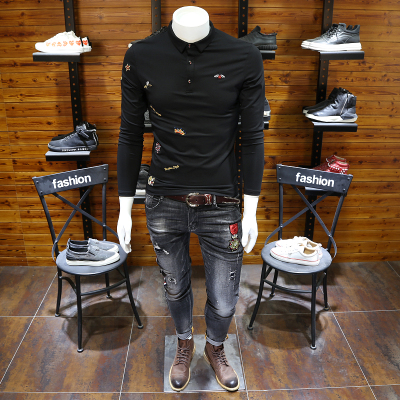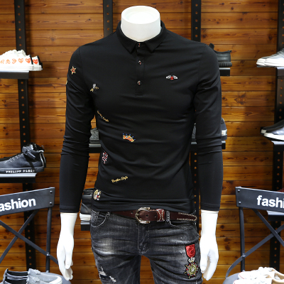 Áo sơ mi đứng châu Âu POLO áo sơ mi nam xu hướng thêu thêu áo thun dài tay cotton cotton sơ mi Anh Paul áo thun nam polo