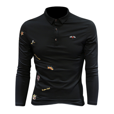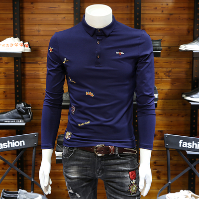 Áo sơ mi đứng châu Âu POLO áo sơ mi nam xu hướng thêu thêu áo thun dài tay cotton cotton sơ mi Anh Paul áo thun nam polo Polo