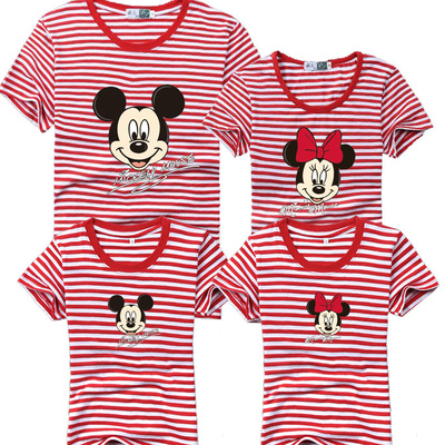 Áo sơ mi linh hồn biển cha-con mặc áo cotton sọc trắng xanh cổ tròn Áo phông ngắn tay mùa hè đầy đủ nhà bốn đứa trẻ mẫu giáo mặc kinh doanh quần áo trẻ em