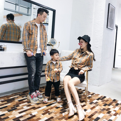 Áo sơ mi nữ-bé mặc xuân hè 2018 áo kẻ sọc mới cho mẹ áo con Hồng Kông áo dài tay gia đình ba áo đẹp mẹ và bé gái