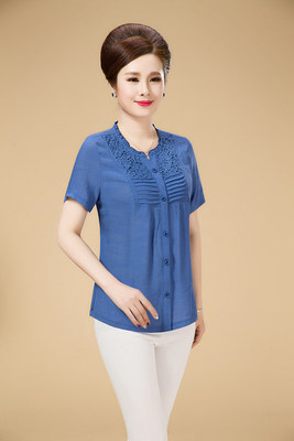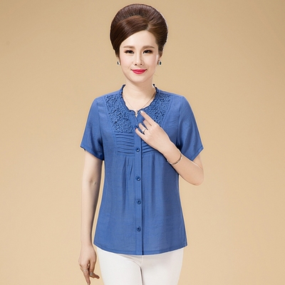 Áo sơ mi nữ kích thước lớn mẹ nạp bông và áo sơ mi vải lanh 2018 mới trung niên màu rắn lỏng mùa hè áo khoác mua quần áo cho mẹ trung tuổi Quần áo của mẹ
