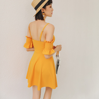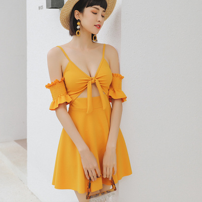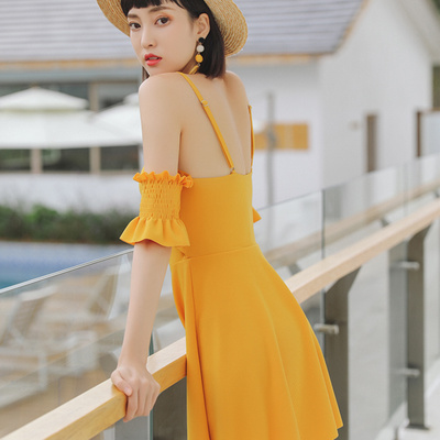 Áo tắm mới một mảnh kiểu áo tắm nữ cảm giác cổ chữ V dây thời trang ngọt ngào kỳ nghỉ giản dị gió cô gái áo tắm Hàn Quốc - Bộ đồ bơi One Piece đồ bơi liền thân dài tay Bộ đồ bơi One Piece