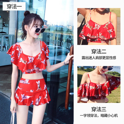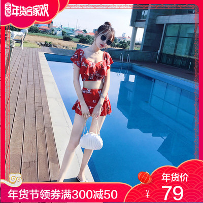 Áo tắm nữ ba mảnh Hàn Quốc suối nước nóng nhỏ thơm mới ngực nhỏ thu thập gợi cảm che bụng áo tắm mỏng đồ bơi 2 mảnh dáng váy Bộ đồ bơi hai mảnh