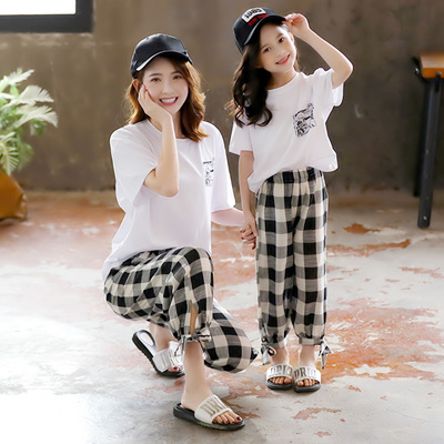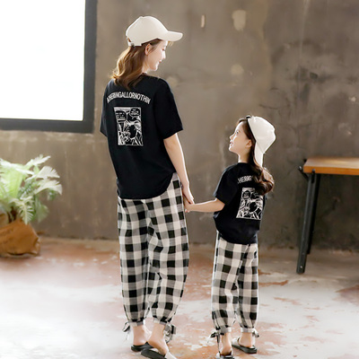 Áo thun bé gái ngắn tay chống muỗi quần hai dây phù hợp với bố mẹ mẹ con rể hè 9 quần mỏng phần bé lớn 170 ga ngoại - Trang phục dành cho cha mẹ và con áo váy gia đình Trang phục dành cho cha mẹ và con