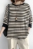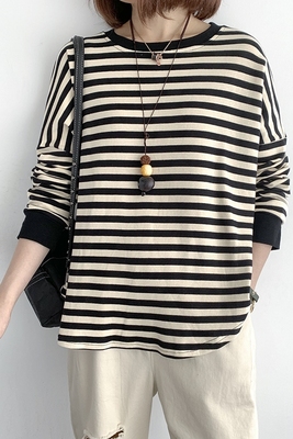 Áo thun cotton nữ mùa thu mới rộng kích cỡ lớn giản dị dài tay chạm đáy áo văn học nữ sọc hoang dã - Áo phông áo phông polo nữ Áo phông
