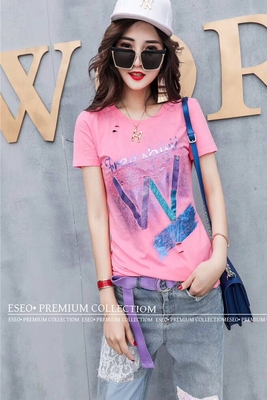 Áo thun cotton nữ ngắn tay Châu Âu 2019 Đầm dự tiệc Châu Âu ga mới áo sơ mi màu hồng mỏng phiên bản Hàn Quốc của thủy triều - Áo phông áo phông nữ cao cấp Áo phông