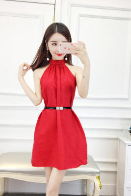 Áo thun nữ cổ lọ không tay ôm eo thon gọn Một chiếc váy liền màu 2018 hè mới mẫu đầm xòe đẹp A-Line Váy
