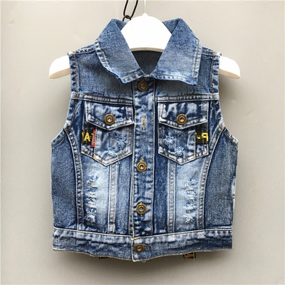 Áo vest bé trai denim vest bé gái mùa xuân và mùa thu 2 áo 3 trẻ em 4 phiên bản Hàn Quốc của bé 7 tuổi 5 áo vest vai thủy triều 6 áo gile nhung trẻ em Áo ghi lê