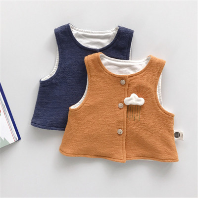 Áo vest cho bé mùa xuân và mùa thu nam nữ bé sơ sinh đôi áo vest cardigan sơ mi hoạt hình nút mùa thu 01 tuổi - Áo ghi lê áo phao trẻ em Áo ghi lê