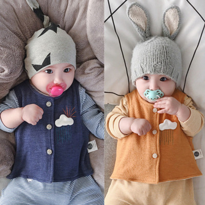 Áo vest cho bé mùa xuân và mùa thu nam nữ bé sơ sinh đôi áo vest cardigan sơ mi hoạt hình nút mùa thu 01 tuổi - Áo ghi lê áo phao trẻ em