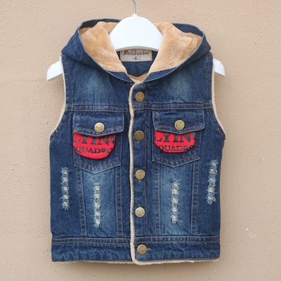 Áo vest trẻ em denim 1 cộng nhung 2 mùa thu đông mới 3 áo ấm cho bé trai và bé gái 4 áo vest bé 5 tuổi áo trẻ em Áo ghi lê