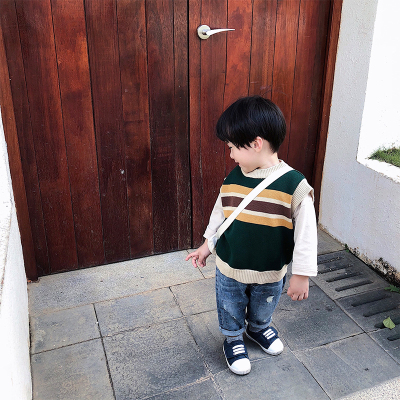 童 Áo vest trẻ em mùa xuân và mùa thu trẻ em vest bé trai dệt kim sọc vest nữ 1-3 tuổi - Áo ghi lê áo gió trẻ em