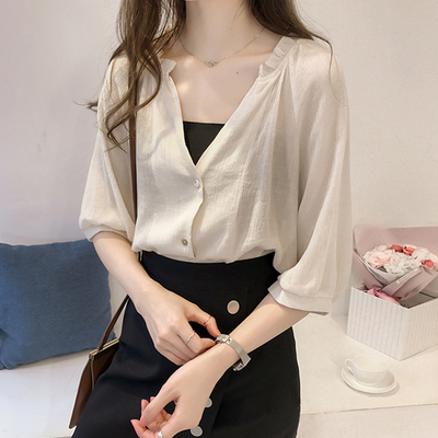 Áo voan nữ tay ngắn mùa hè mới cộng với phân bón XL béo mm che bụng siêu ngọt áo khoác ga ngọt ngào áo khoác nữ hàn quốc Cộng với kích thước quần áo