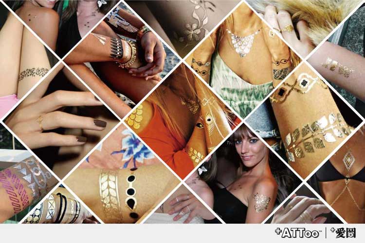 [+ ATTOO] châu âu Henna flower bracelet hot vàng bạc cánh tay dán nam giới và phụ nữ body tattoo tranh bền không thấm nước hình xăm dán đẹp Vẽ trên cơ thể