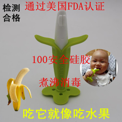 Authentic bé chuối teether bé răng hàm an toàn silicone răng hàm trẻ em thoải mái đồ chơi thử nghiệm kinh doanh - Gutta-percha / Toothbrsuh / Kem đánh răng túi nhai chống hóc Upass Gutta-percha / Toothbrsuh / Kem đánh răng