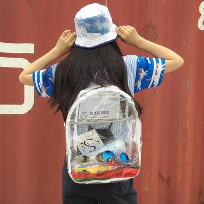B-B18 trong suốt ba lô Harajuku phong cách công suất lớn xu hướng hoang dã sản phẩm duy nhất dây kéo ba lô cặp sách học sinh cấp 2 nữ màu đen Ba lô