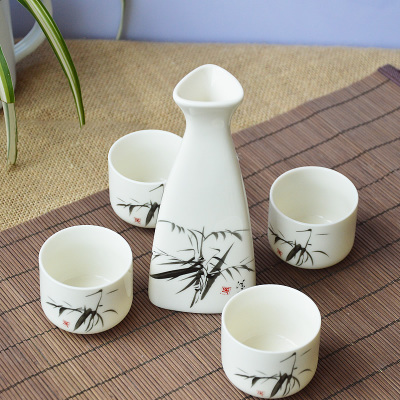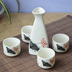 Ba hai bình rượu bằng gốm đặt một nồi bốn chén rượu vang trắng rượu mạnh hầm rượu nhỏ màu vàng chai rượu vang phục vụ gia đình chén uống rượu