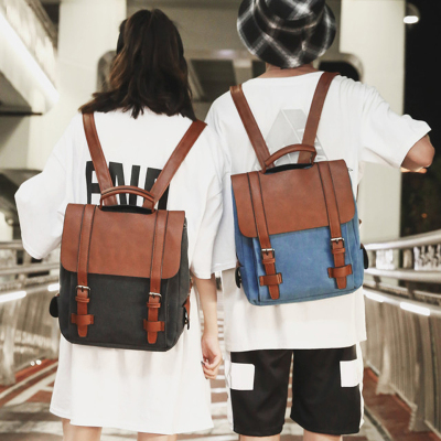 Ba lô nam Retro Túi sinh viên đại học Hàn Quốc Canvas với cặp da tương phản Ba lô đơn giản đơn giản balo cho bé gái tiểu học