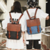 Ba lô nam Retro Túi sinh viên đại học Hàn Quốc Canvas với cặp da tương phản Ba lô đơn giản đơn giản balo cho bé gái tiểu học Ba lô